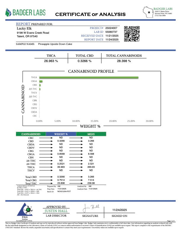 Pineapple Upside Down Cake is best known for translating dessert genetics into a bright, fruit-forward profile, combining Pineapple Trainwreck’s tropical sharpness with the structure and sweetness of Cookie Monster. In a light-assist greenhouse environment, these traits tighten up—producing denser buds, stronger trichome coverage, and a fresher terpene expression than full-season outdoor flower. This method allows the strain’s pineapple-forward character to shine while maintaining the visual density and clarity typically associated with indoor cultivation.